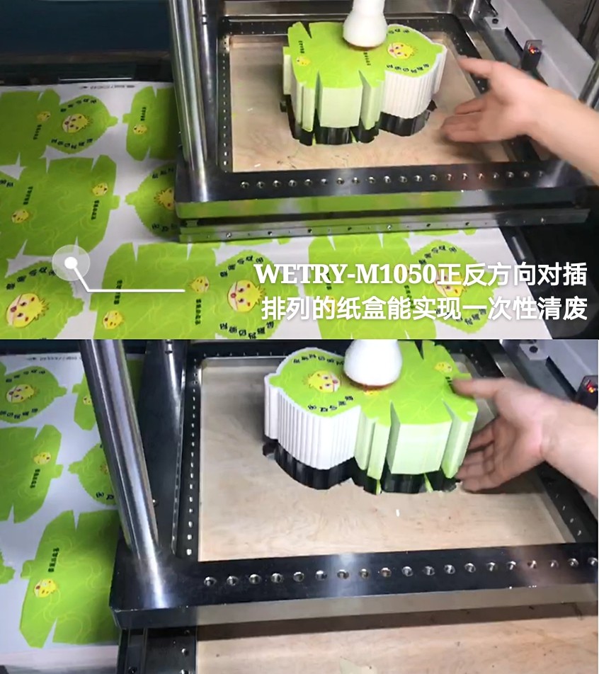客戶問(wèn)10:我們的產(chǎn)品是紙杯正反方向拼版的, 筒切機(jī)模切,沒(méi)有咬口,兩邊都是弧形的紙邊,請(qǐng)問(wèn)這種可以用你們的設(shè)備清廢嗎?