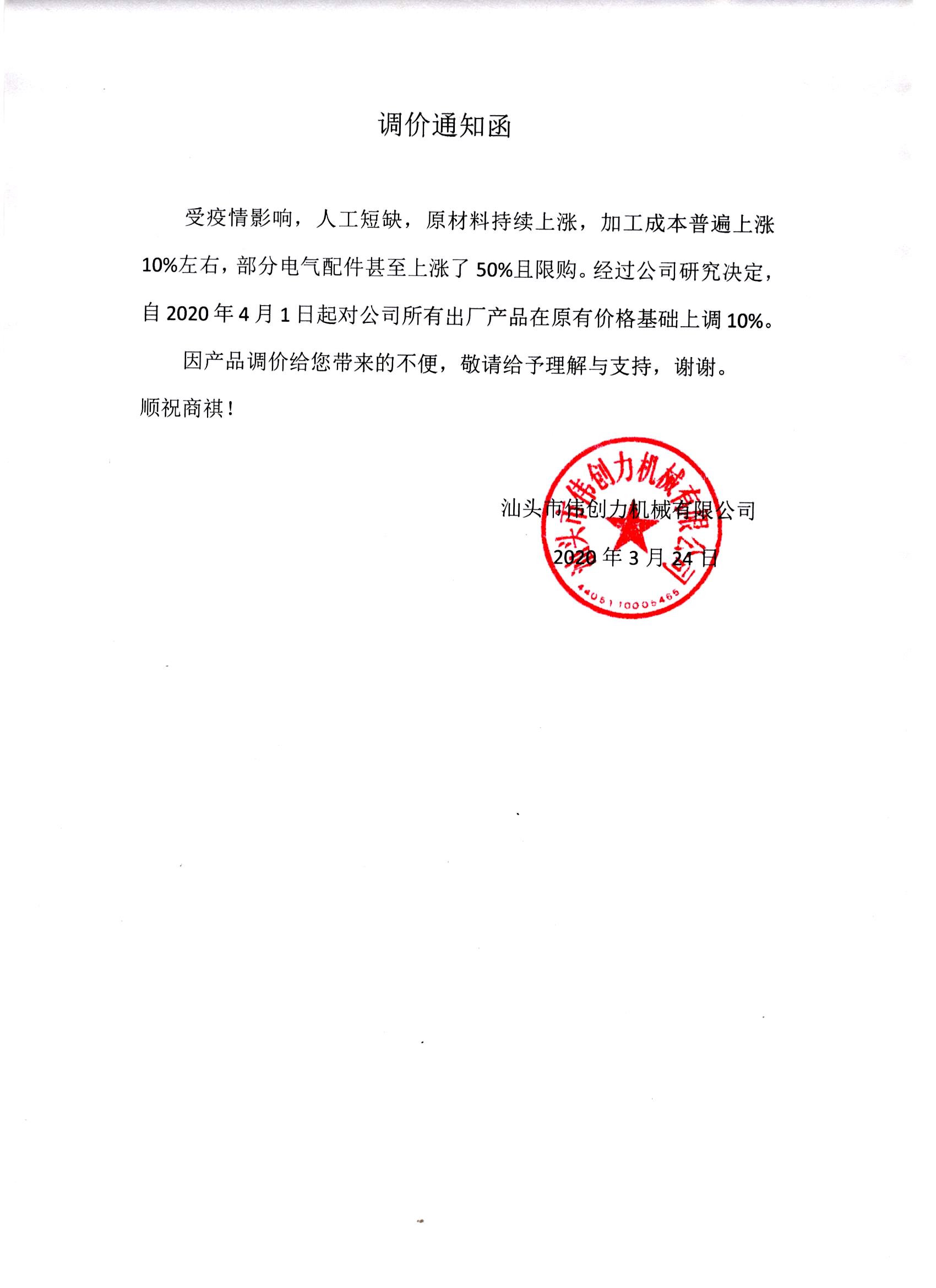 調(diào)價(jià)通知