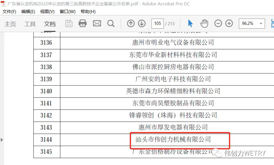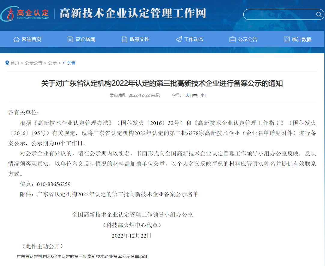根據《高新技術企業(yè)認定管理辦法》和《高新技術企業(yè)認定管理工作指引》有關規(guī)定,現(xiàn)將廣東省認定機構2022年認定的第三批6378家高新技術企業(yè)進行備案公示。汕頭市偉創(chuàng)力機械有限公司有限公司名列其中。